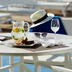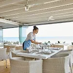 Gli ospiti sono invitati al ristorante Mesogeios a godere del cibo squisito.